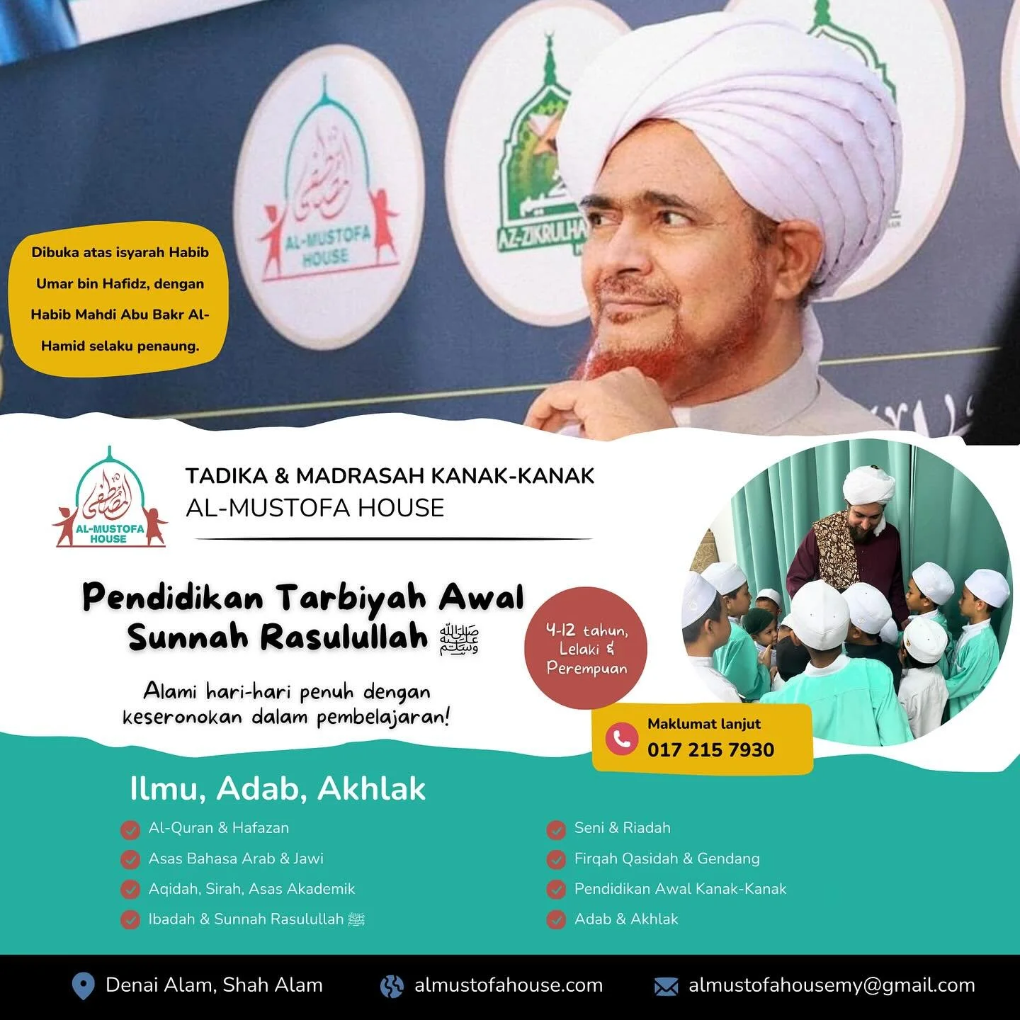 Al-Mustofa House (AMH) telah dibuka atas isyarah dari Guru Besar kita Al Habib Umar bin Hafidz, untuk menyediakan tarbiyah awal buat anak-anak berusia 4-11 tahun, sebelum mereka meneruskan pembelajaran ke peringkat seterusnya.